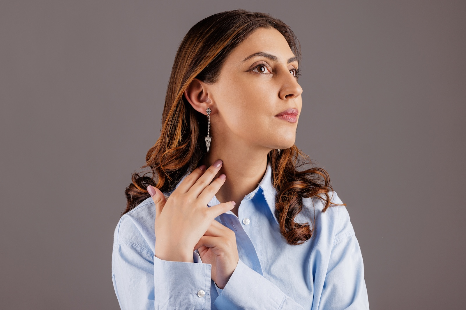 cel cu formă triunghiulară și pandantiv geometric) ca un cercel normal, prin lobul urechii.
