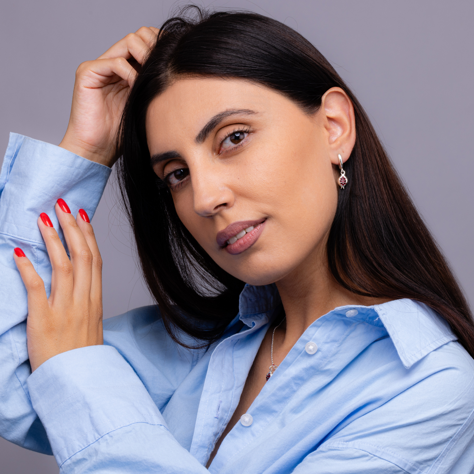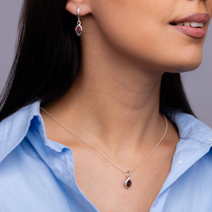 Acești cercei, numiți simplu Goris, sunt un omagiu adus acelor fructe sfinte. Realizați din argint patinat, cu un design delicat de rodie și pietre roșii ca sâmburii rubinii ai fructului, bijuteria păstrează echilibrul perfect între tradiție și rafinament.