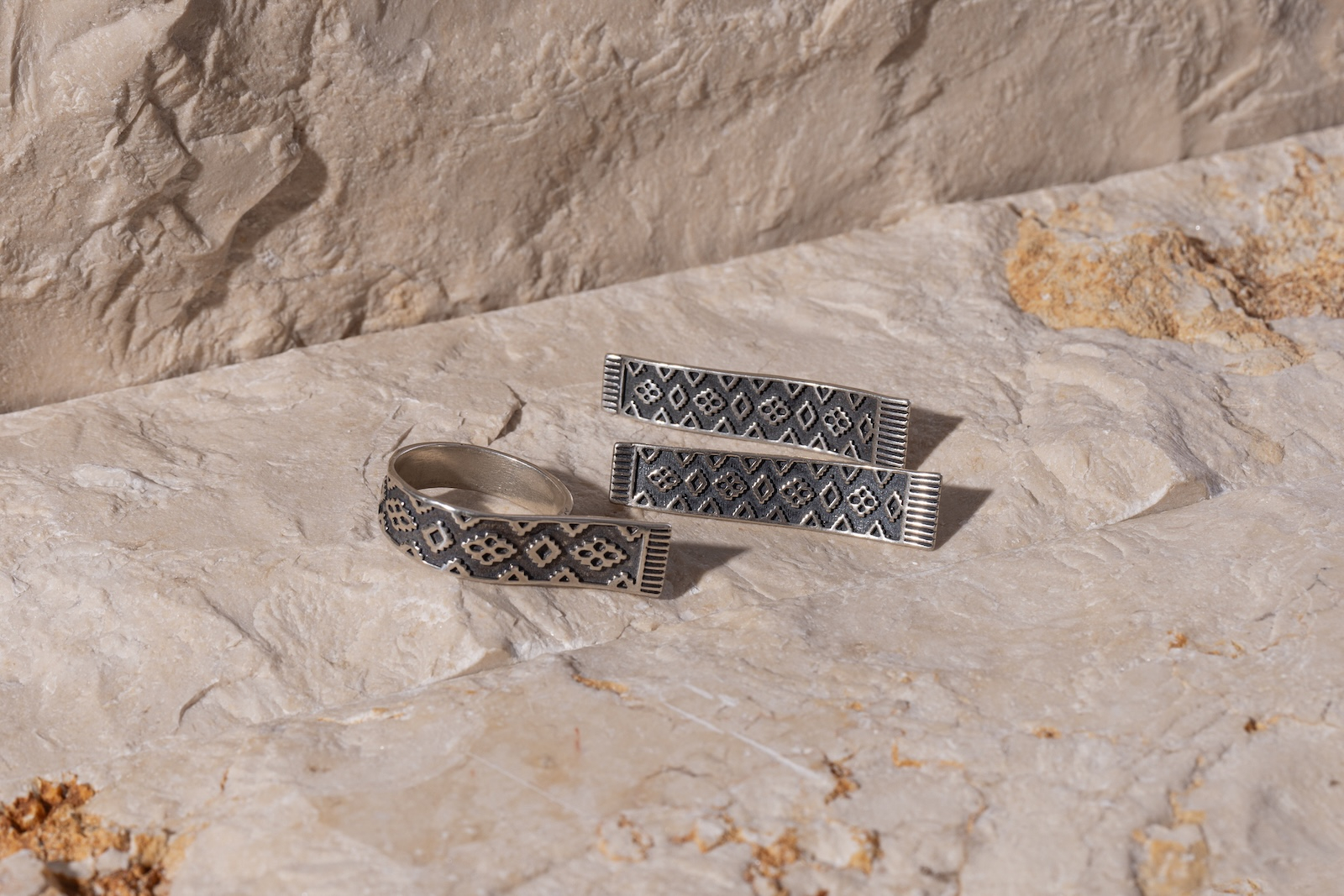 Cerceii Gorg (covor în limba armeană) reinterpretează simbolurile din covoarele tradiționale armene, unde fiecare linie țesută era o rugăciune nerostită. Formele repetitive gravate în metal nu sunt doar decorative – sunt moșteniri vizuale, transformate acum în bijuterie contemporană.