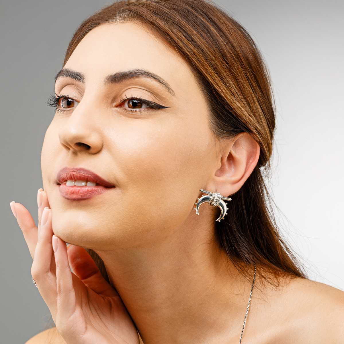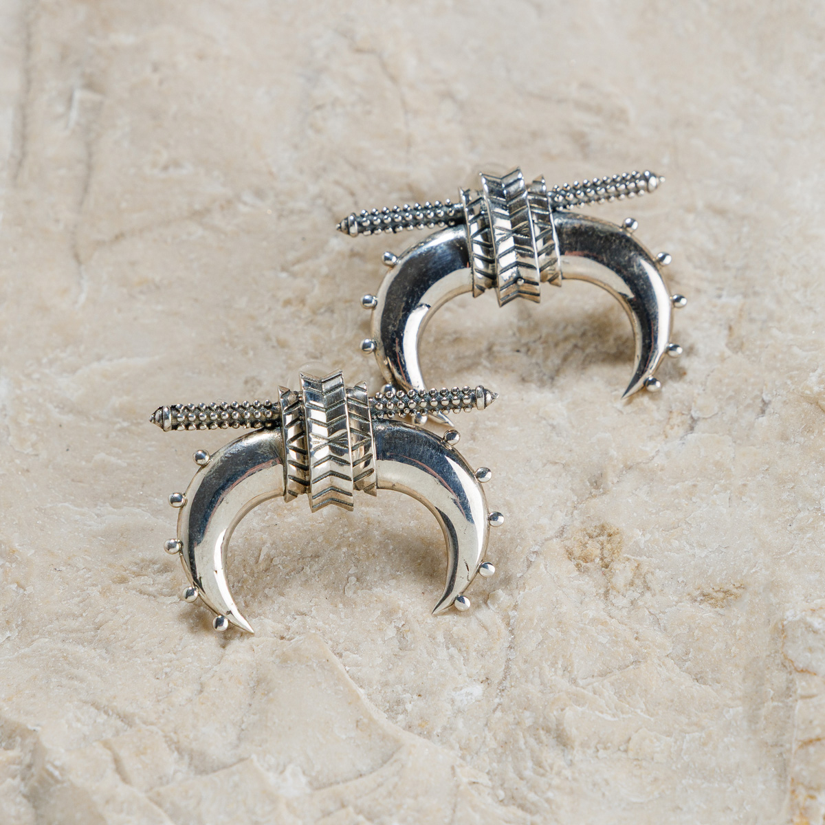 Forma lor elegantă, cu două elemente arcuite, amintește de mersul neînfricat înainte, chiar și atunci când drumul devine abrupt. Realizați manual din argint 925, cu detalii inspirate din bijuteria tradițională armeană, cerceii Kotoș adaugă o notă de forță discretă și echilibru fiecărei apariții
