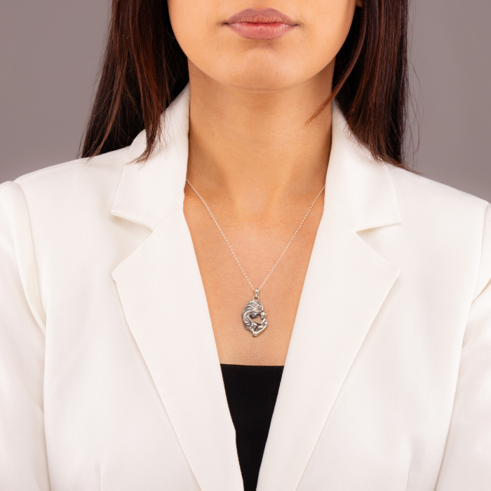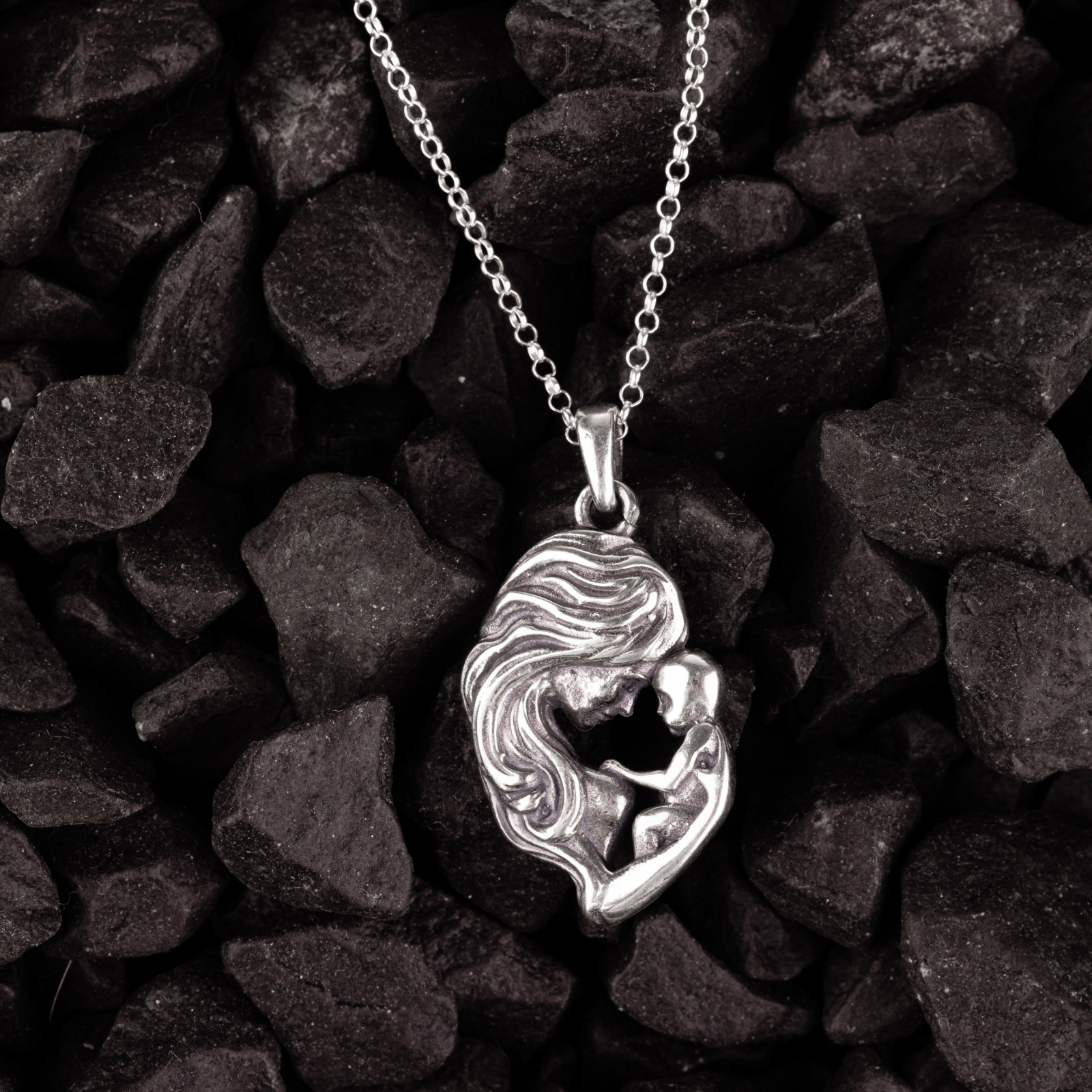 Mamă. Un cuvânt simplu, dar cu greutate eternă. Acest pandantiv cuprinde esența acelei legături sacre: o îmbrățișare care nu are nevoie de cuvinte, un gest care protejează, vindecă și dă sens.