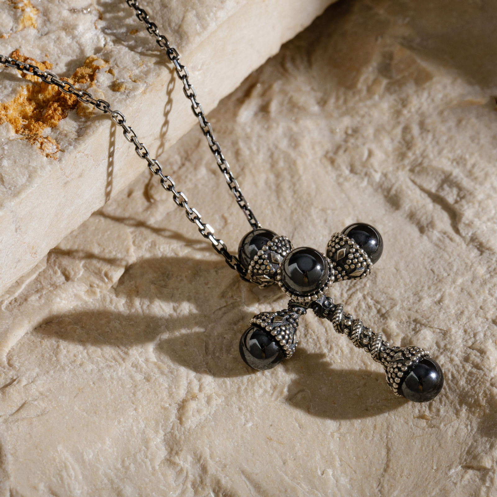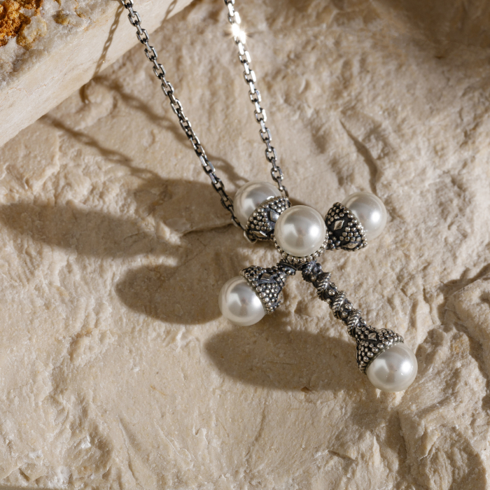 lusavor în limba armeană) este lumina care deschide drumul. Acest colier în formă de cruce este o reinterpretare regală a simbolului credinței. Realizat din argint 925, cu perle montate în cinci capete sculpturale, colierul evocă o relicvă veche, dar cu o prezență contemporană.