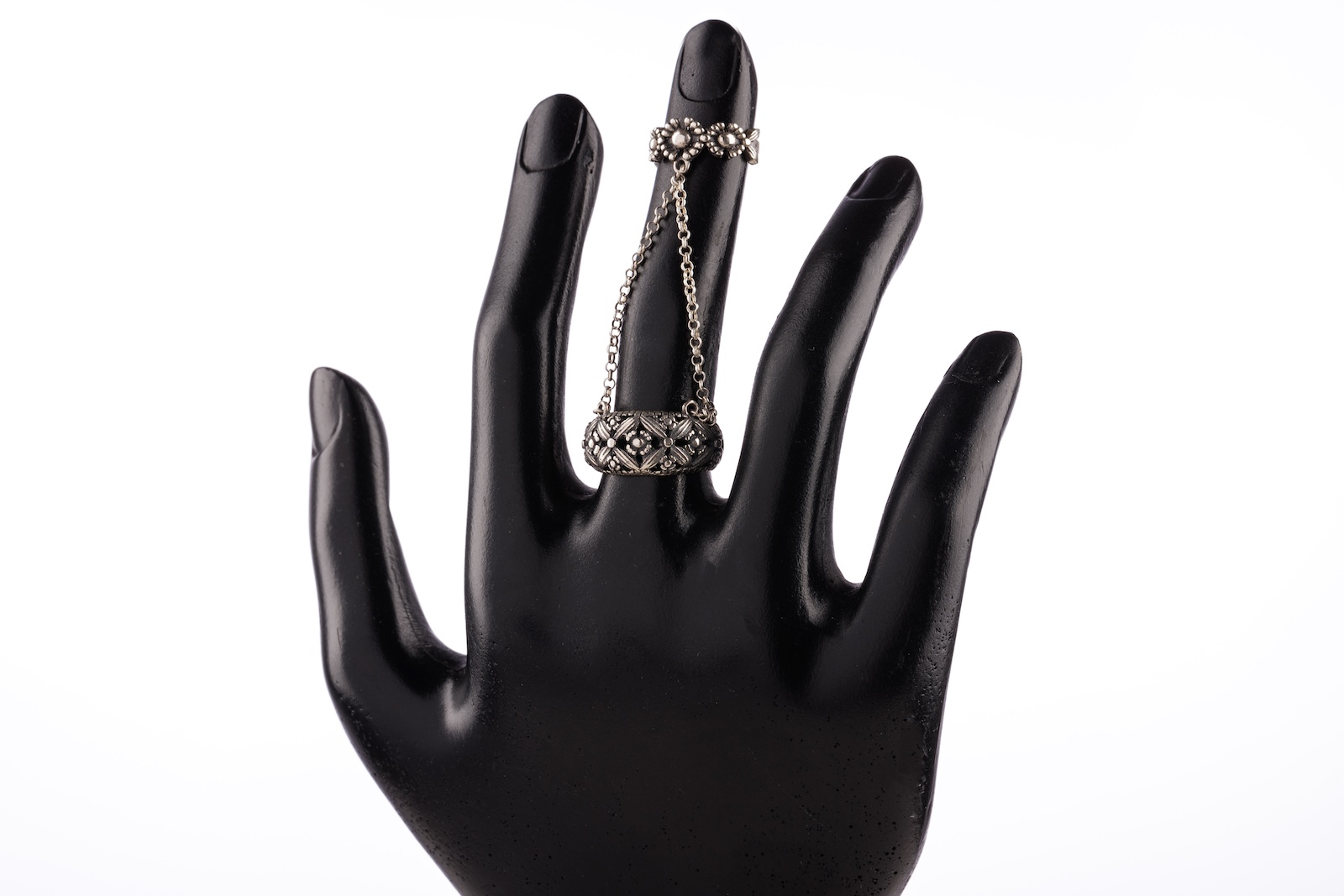 Detaliile filigranate amintesc de bijuteriile sacre ale unui trecut uitat, iar designul îndrăzneț îl transformă într-o piesă de artă purtabilă.