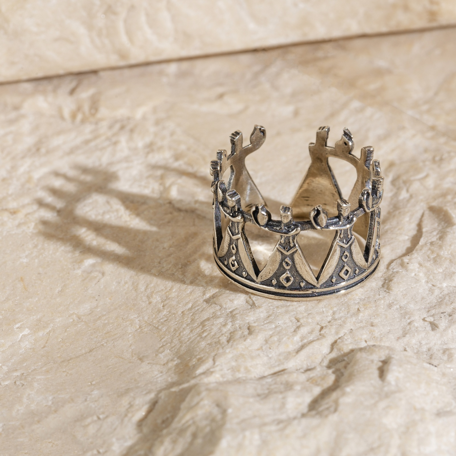 Forma circulară, deschisă, inspiră mișcare și echilibru – ca o horă ancestrală, purtată pe deget.
