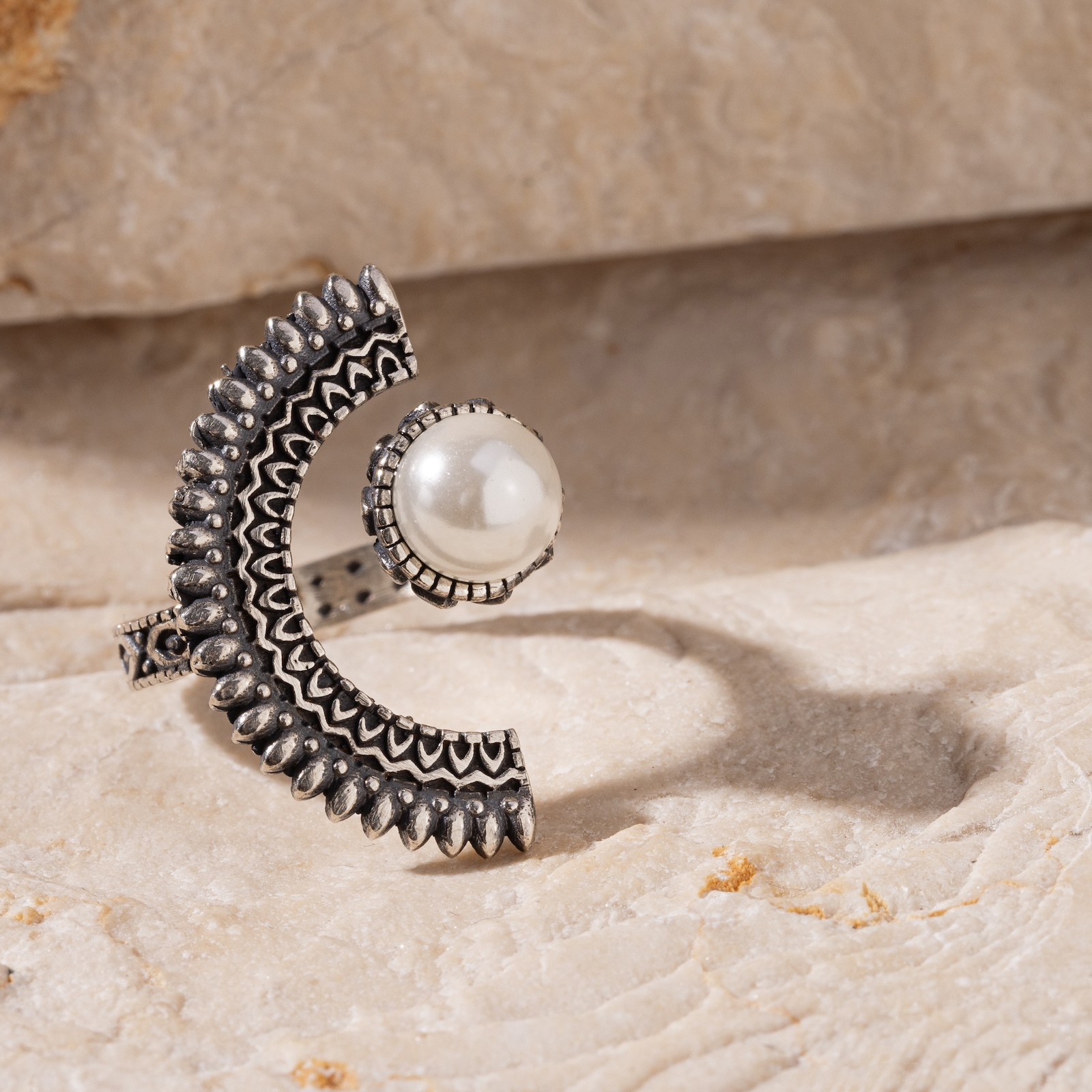 Lusiné este un inel elegant, modelat sub forma unei semiluni cu o perlă în centru. Acesta este o celebrare a feminității, a misterului și a liniștii interioare.